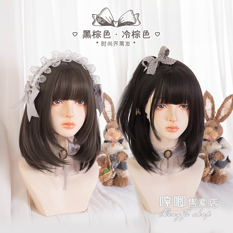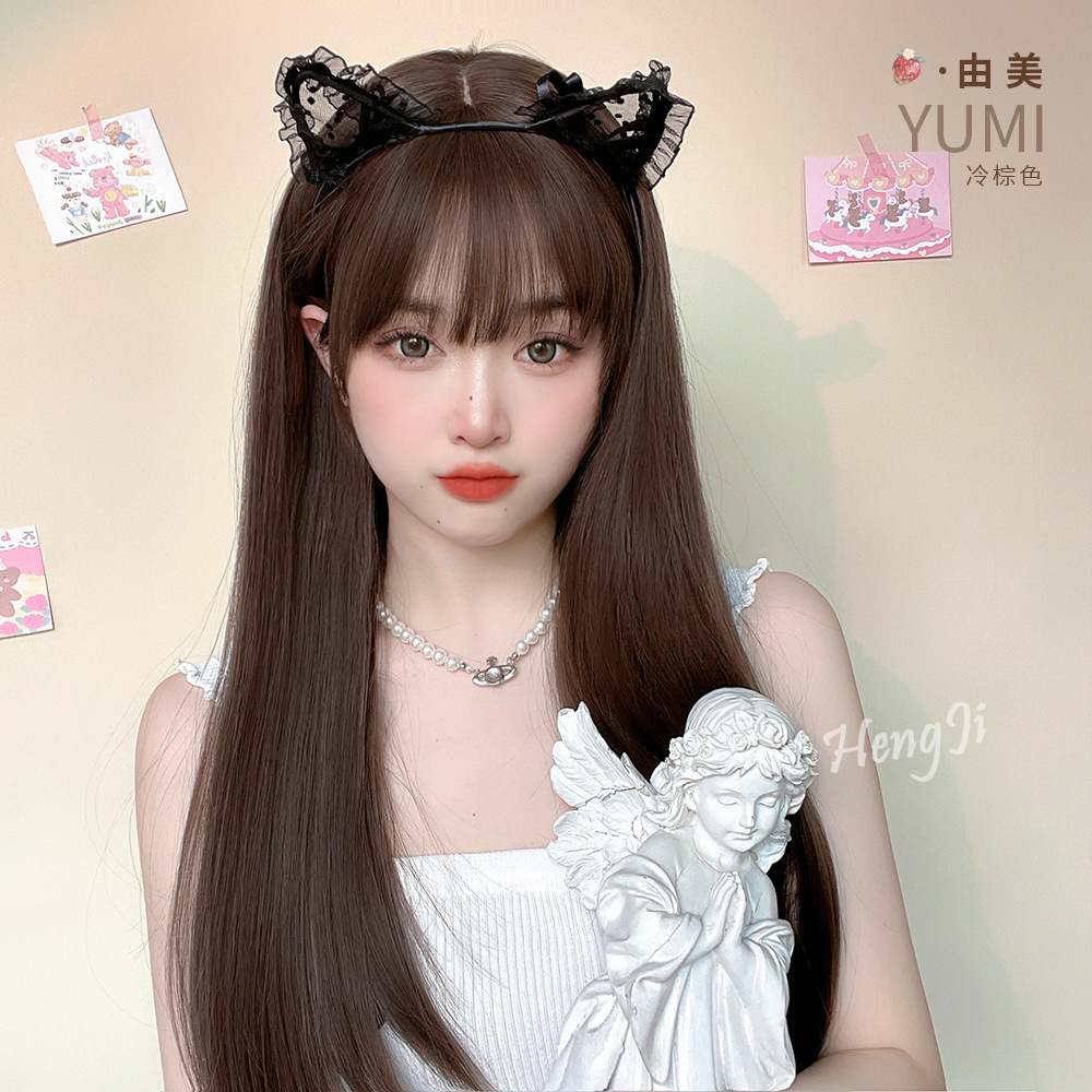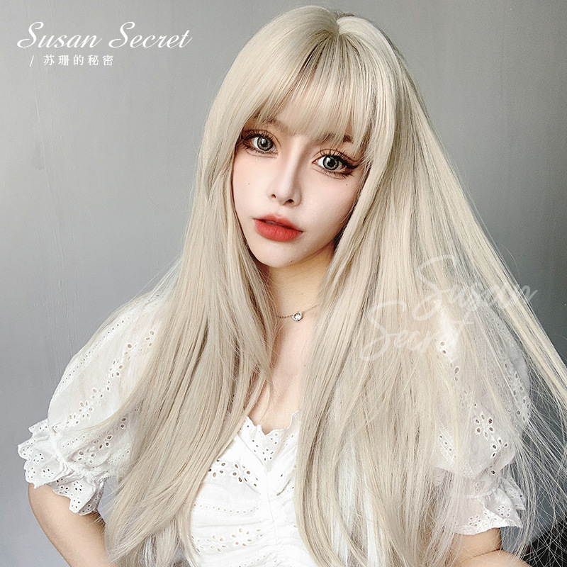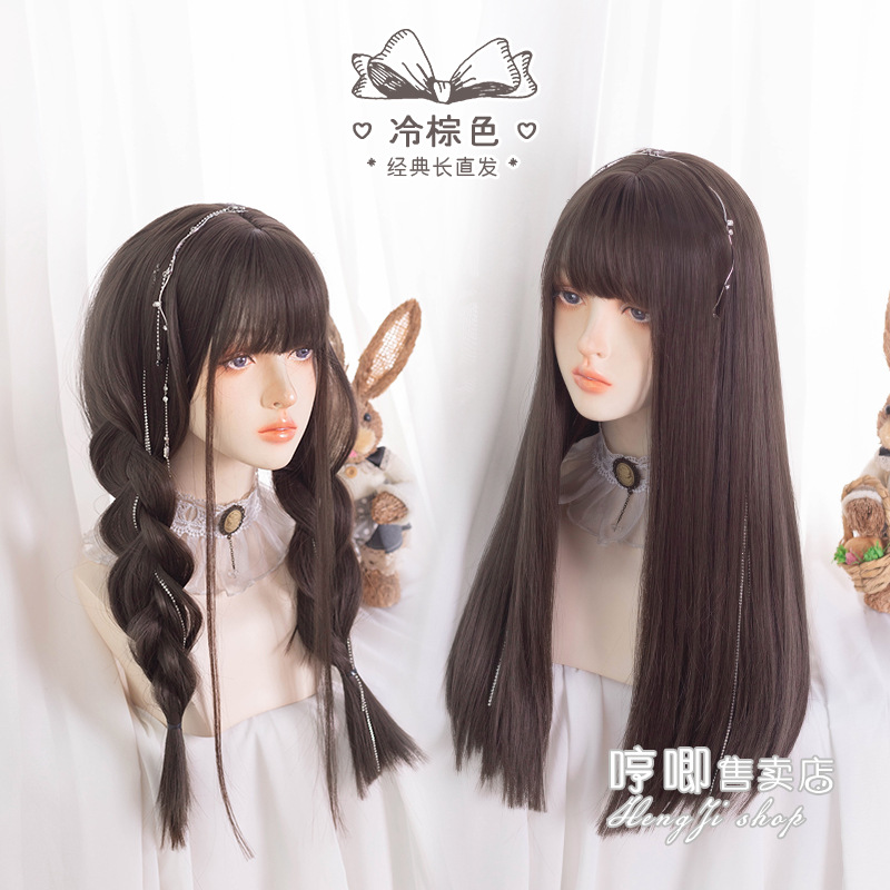 メーカー卸売りかつら女性長髪ロングストレートlolita日常丸顔ネット赤日系白jk全頭セット休暇