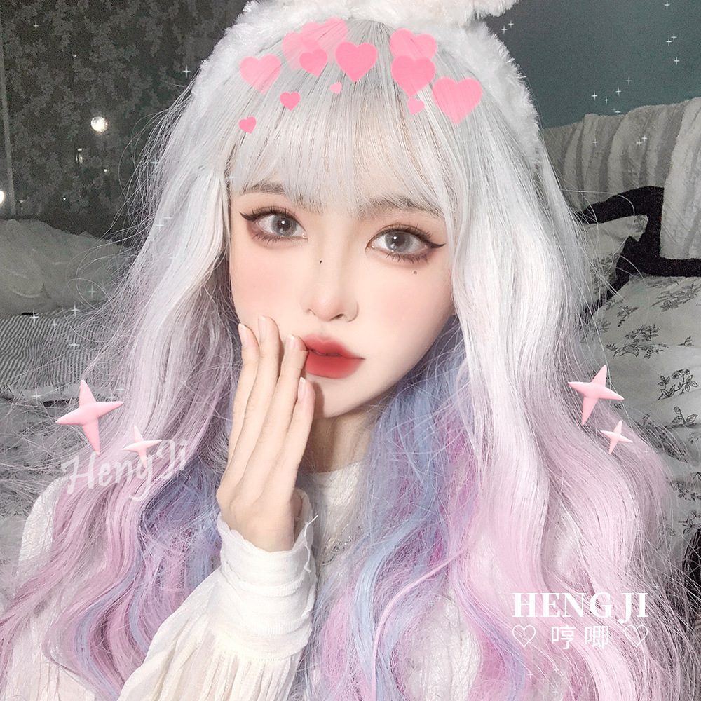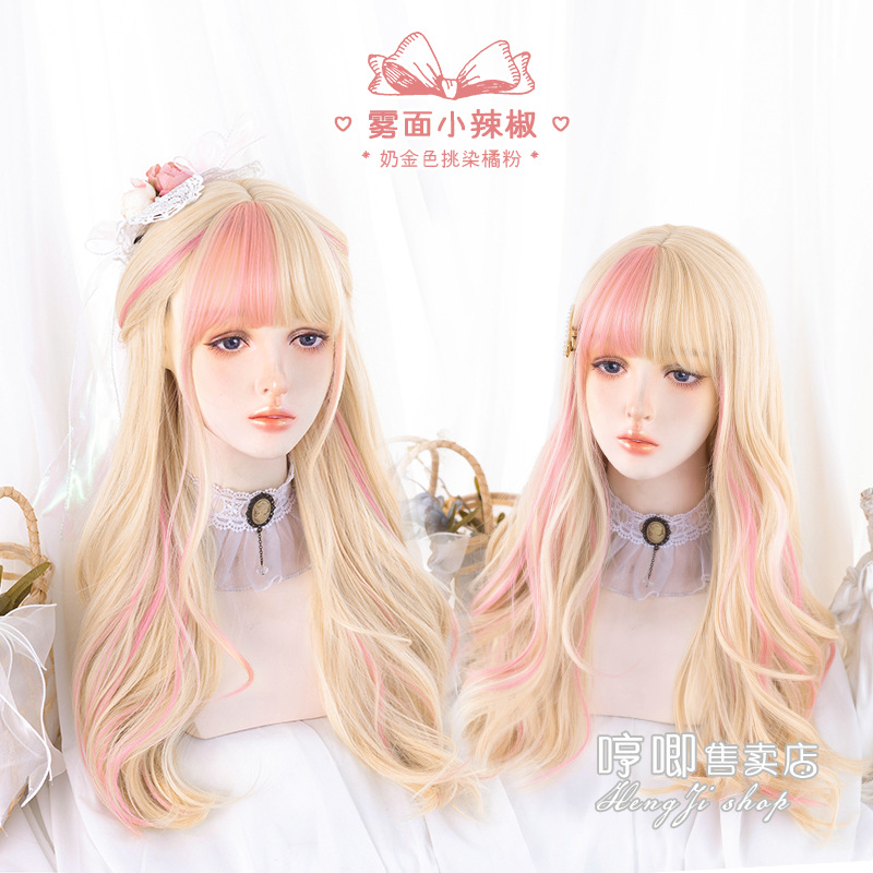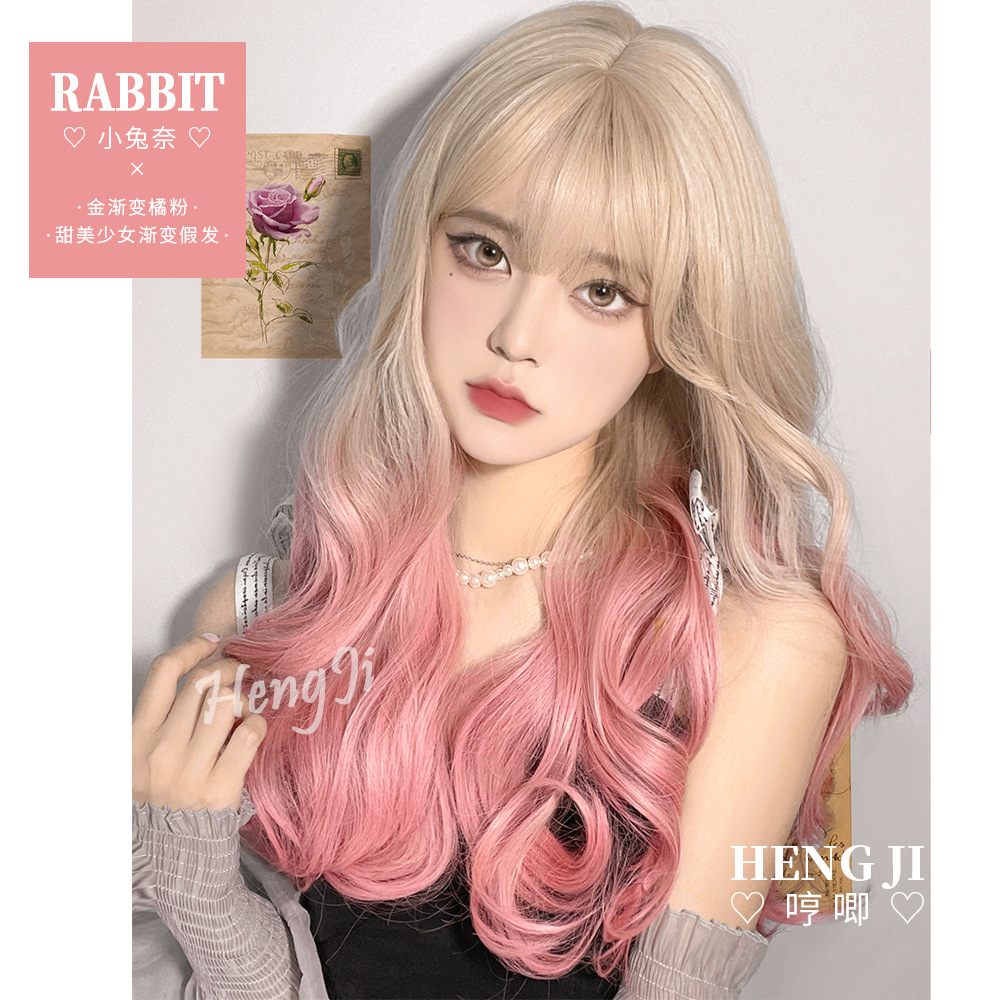 クロスボーダーグラデーションピンクかつら女长髪lolitaパンケーキ长い巻き髪ナチュラルフルヘッドカバー式小兎奈かつら
