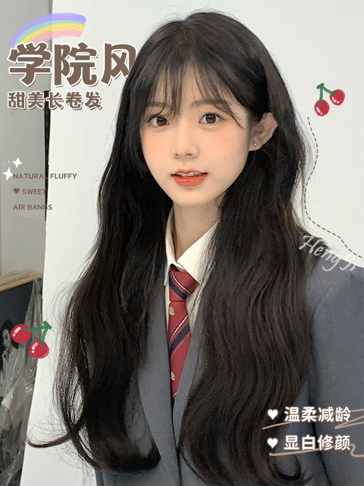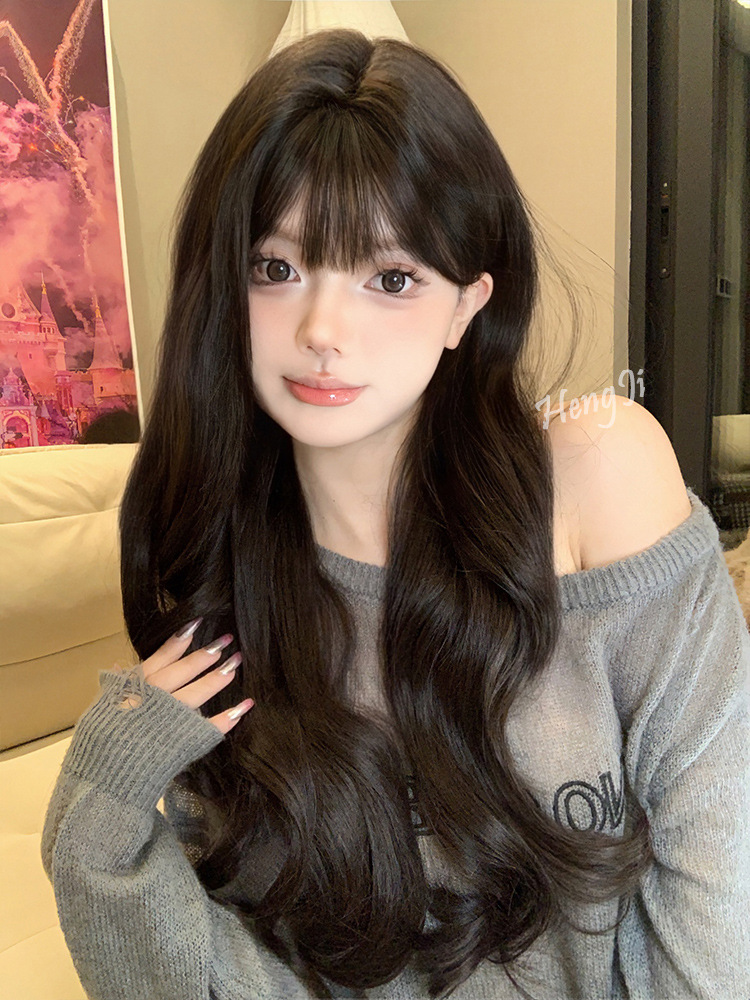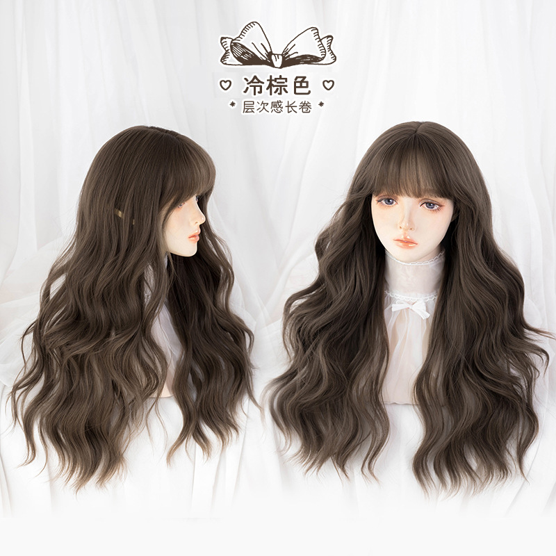 クロスボーダーかつら女性ロングヘア大きな波长いカールlolita自然空気前髪かつらフルヘッドカバー式かつら