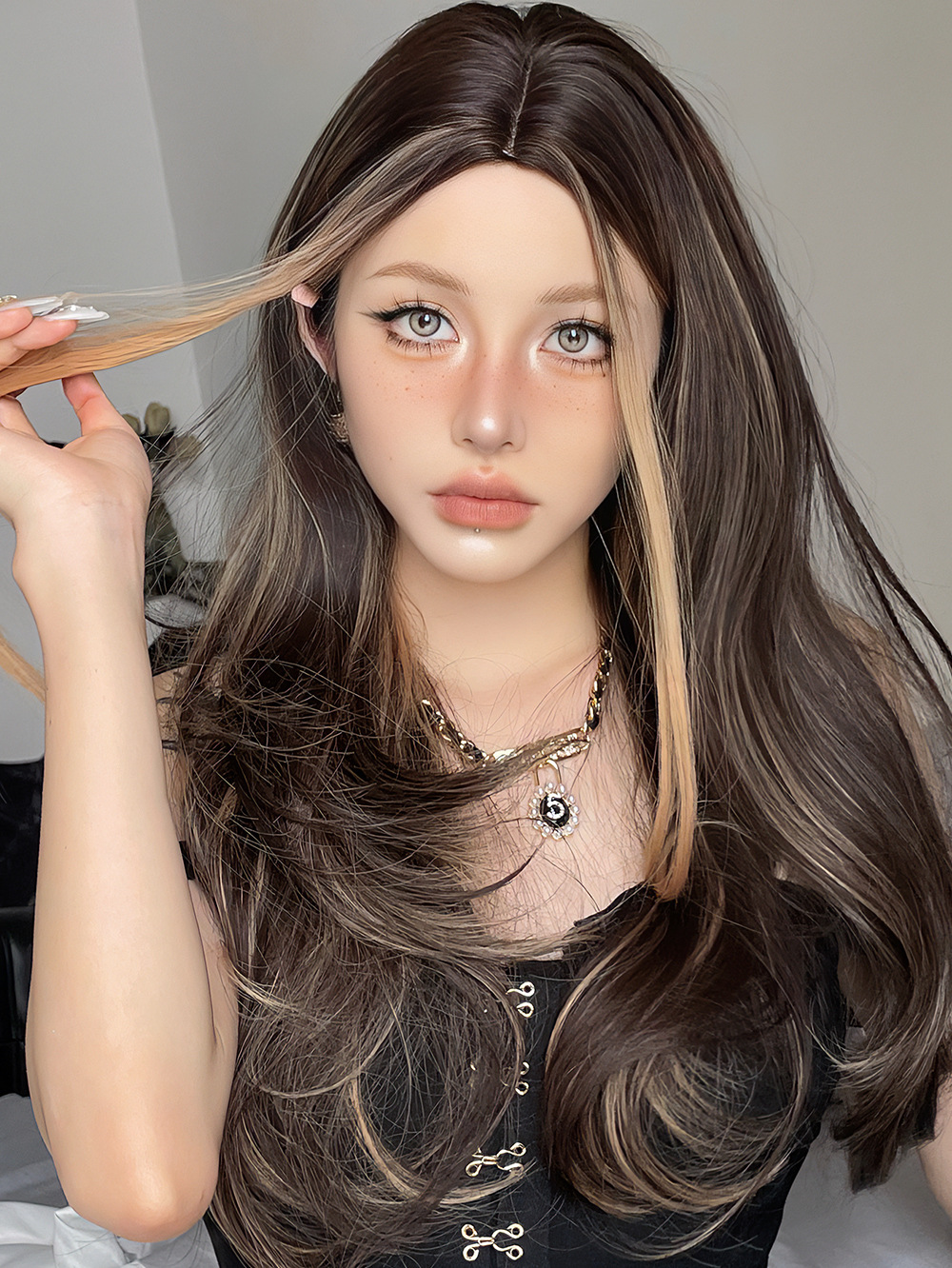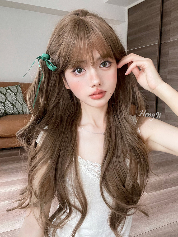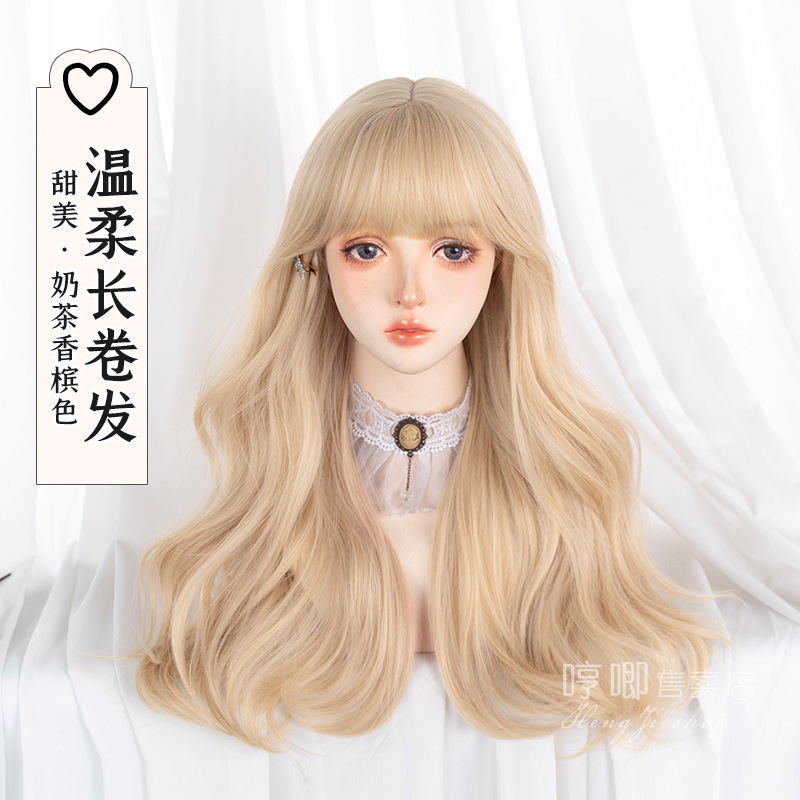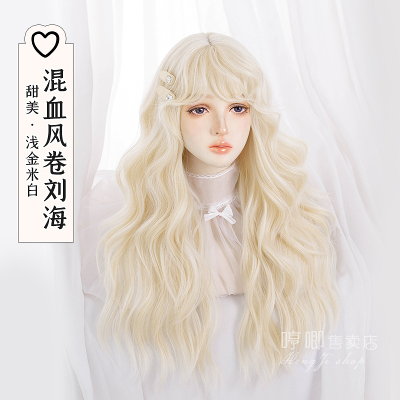 クロスボーダーかつら女性の日常jk波巻き日系lolitaロングカール原宿自然巻き前髪金色かつら