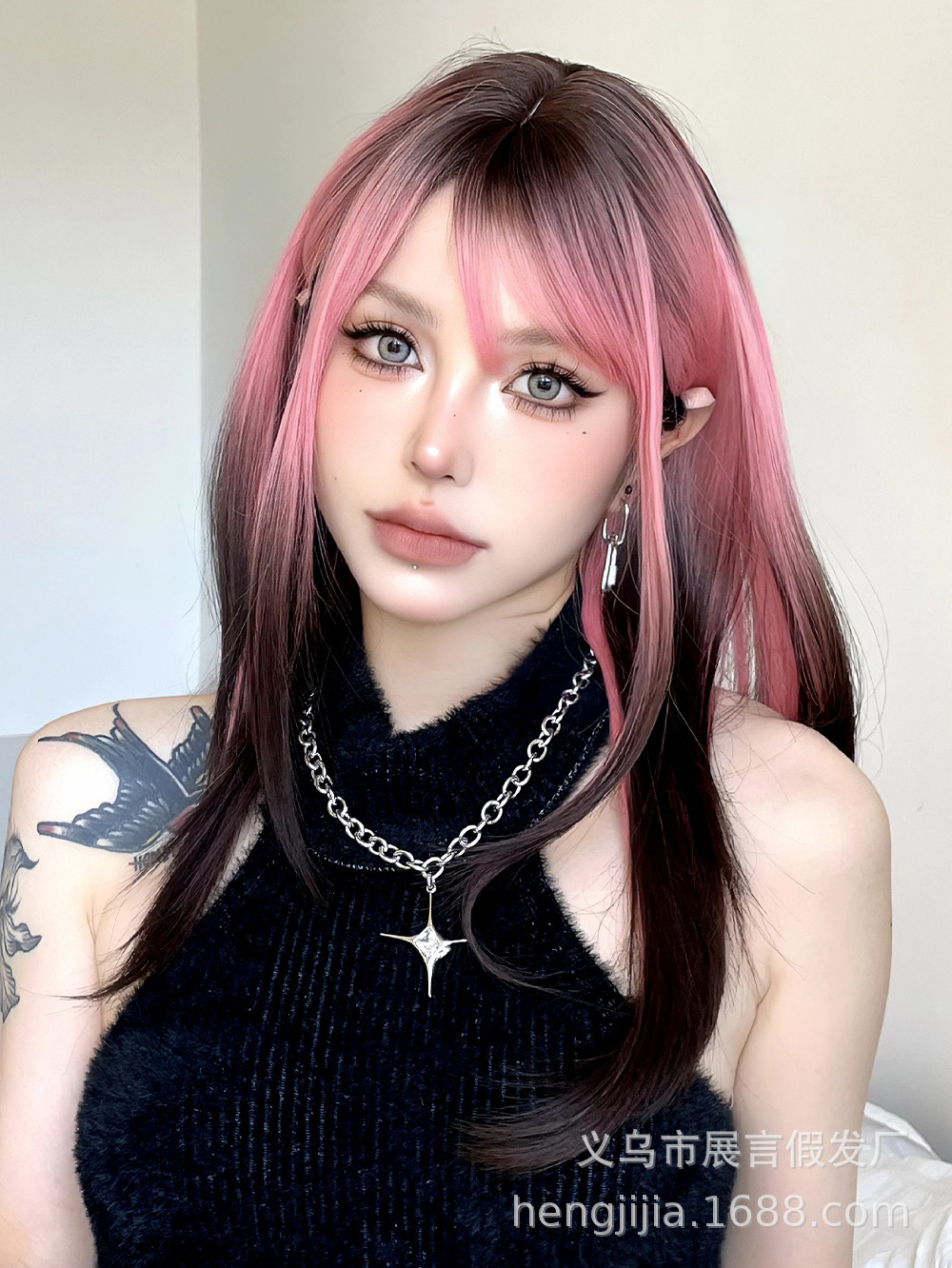 クロスボーダーの卸売りのかつらの女性の長いまっすぐな髪の原宿の柔らかい妹のLolitaの頭上は黒いグラデーションの粉の日常のかわいい女性を染めます。