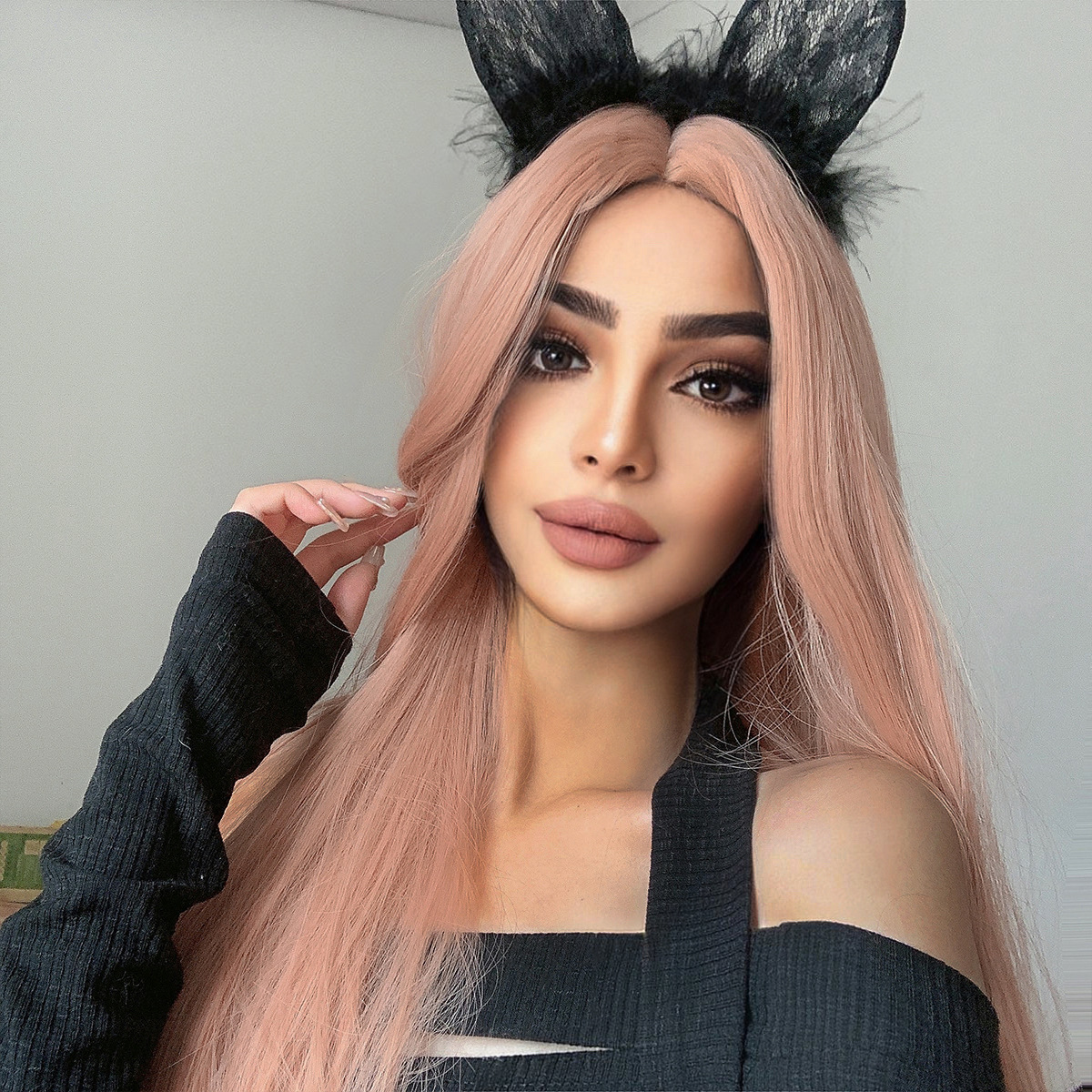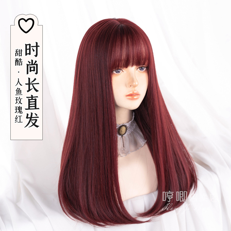 国境を越えた卸売りローズかつら女中分リサ長直髪ネット赤中分オレンジ粉ネット赤中長の全頭カバー