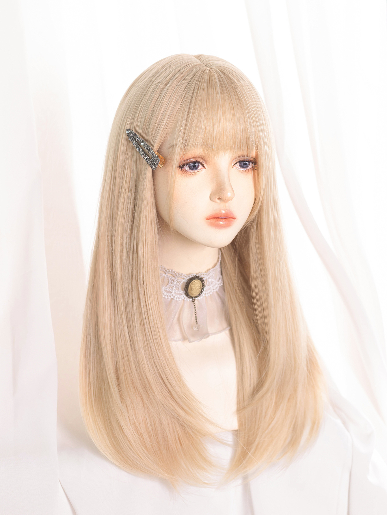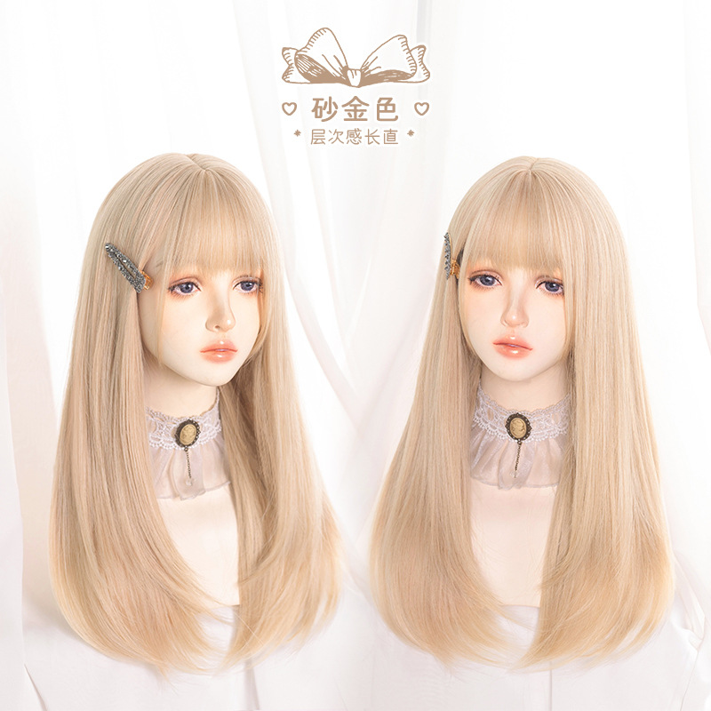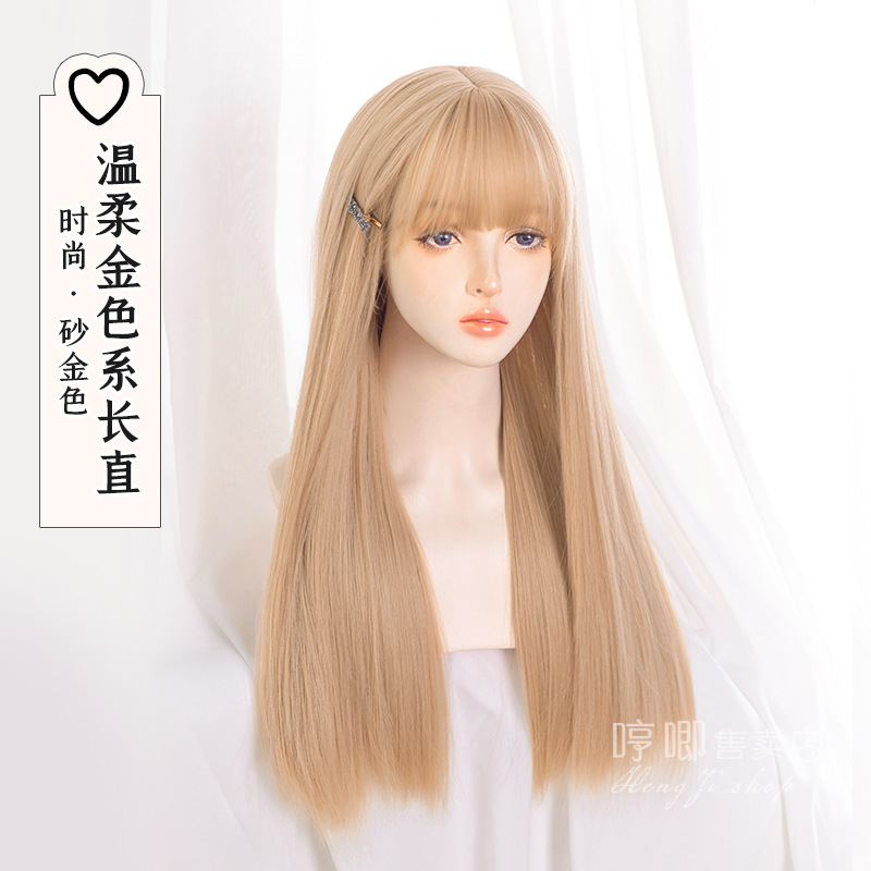クロスボーダーのかつらの女性の長い髪の女性団の金色の長いまっすぐな髪の丸い顔のlolitaの自然な全身のカバーのjkの自然なかつら