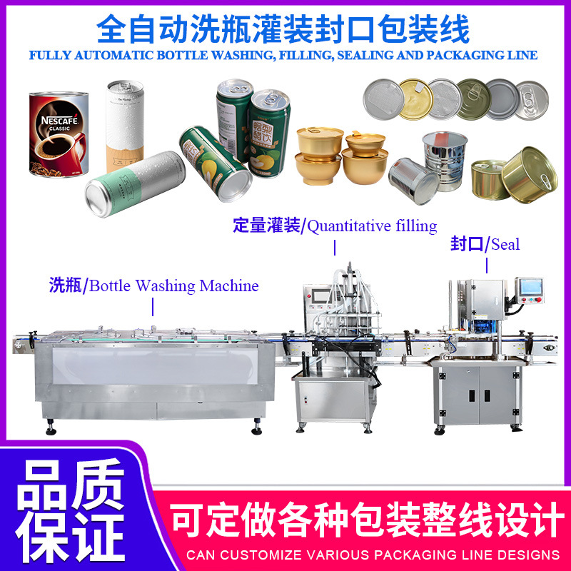 全自動酢飲料液体洗浄瓶充填封口包装ライン易引き蓋缶詰鉄缶封口機械設備