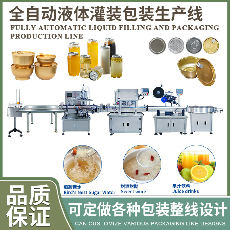 メーカー自動キャビアシールラベリング生産ライン機器クロスボーダー全自動液体充填キャッピングマシン