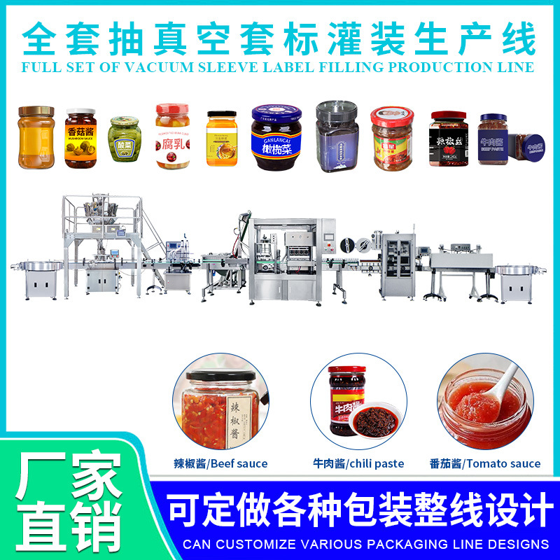 全自動ガラス瓶ソース充填真空シール生産ラインカレー大豆にんにく蓉ソース缶シールライン