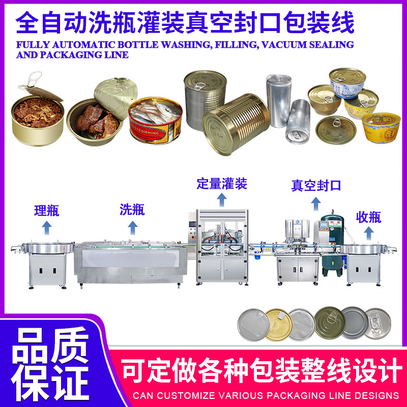 全自動ボトル洗浄充填真空シール機械設備ペット肉缶詰シール生産ラインの完全なセットメーカー