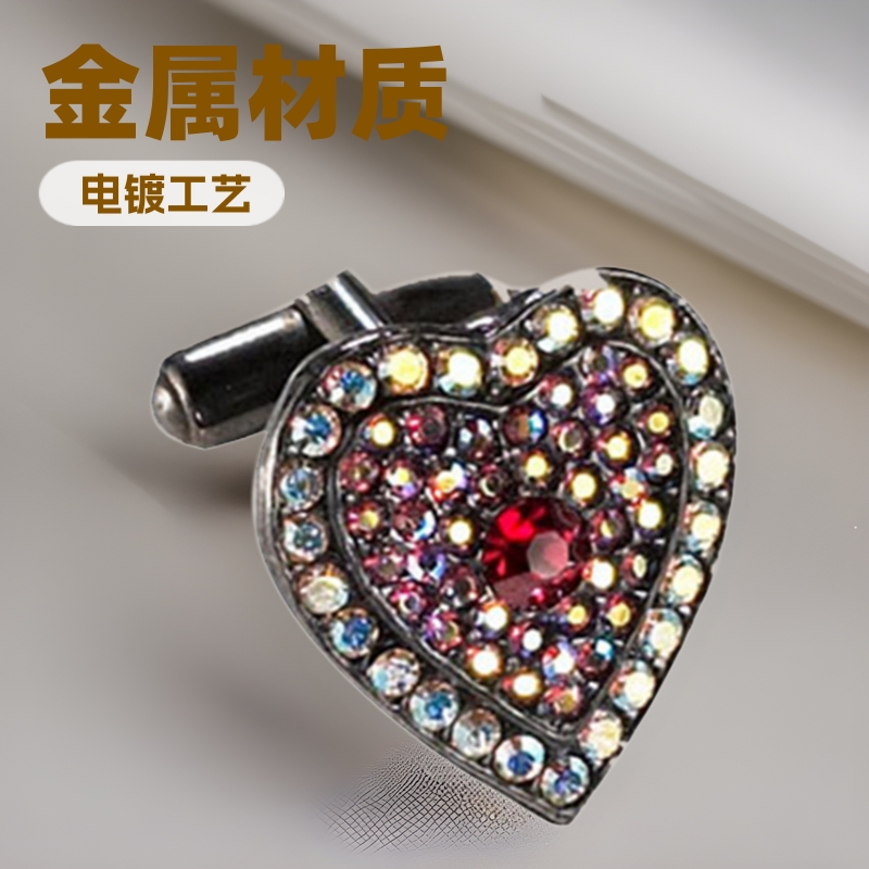 ハート型のフレンチカフスを作って、ペンキを塗って、ダイヤモンドの工芸銅鉄の亜鉛合金の男性の金属の服を作って飾ります。