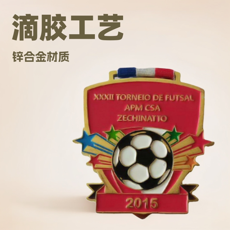 サッカーの試合の競技のメダルは滴のゴムを作って漆のリボンの工芸の銅の鉄の亜鉛合金の勲章の金属の贈り物を焼きます。