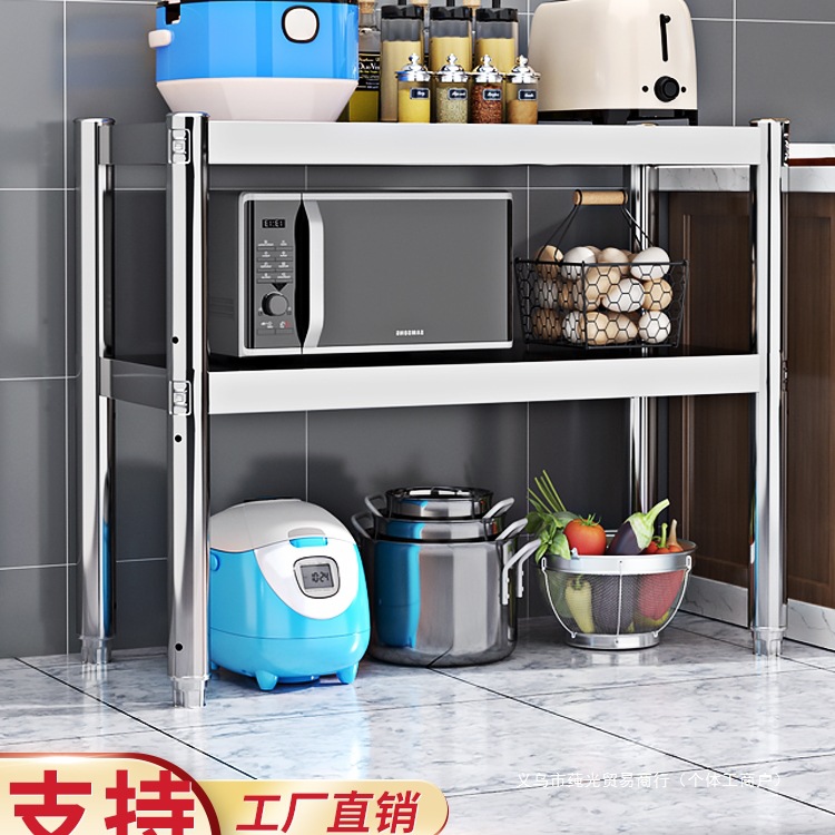 キッチンステンレススチールラックフロアスタンド多機能2段棚キッチン用品収納電子レンジラック