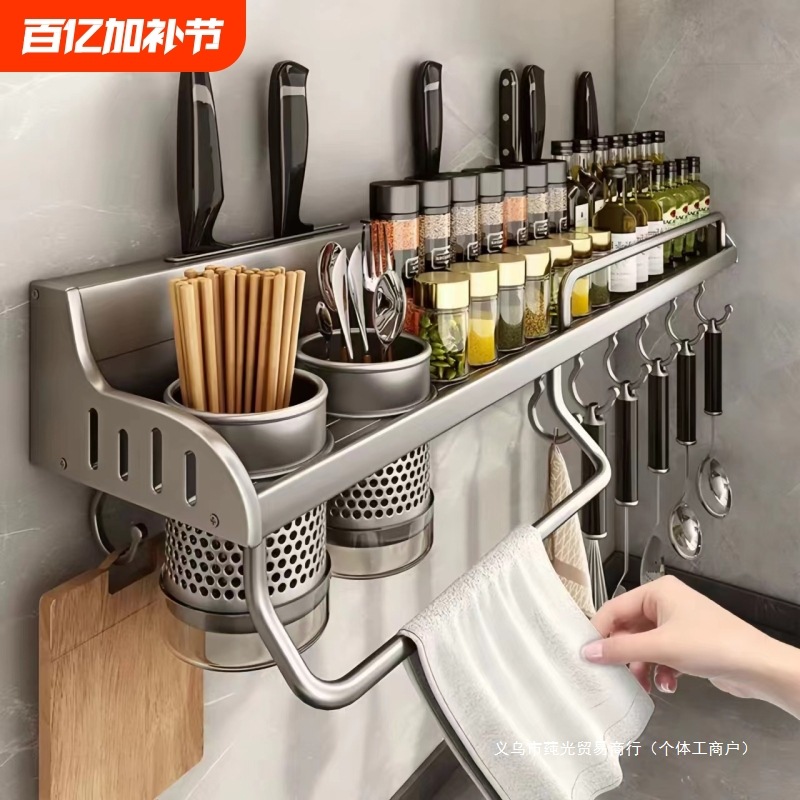 キッチンラック壁掛け家庭用多機能箸とナイフホルダー調味料用品収納ラックキャビネットアルミニウム