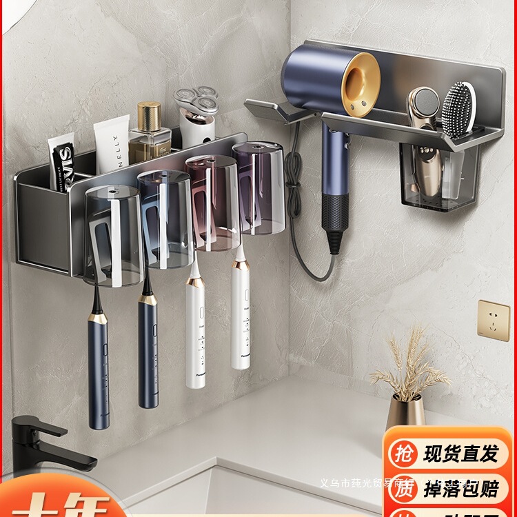 ガンアッシュ歯ブラシラック収納ラック歯磨きカップパンチフリー浴室壁掛けマウスウォッシュカップ歯磨きスペースアルミニウム