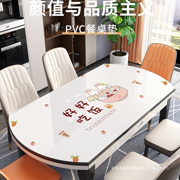 楕円形のダイニングテーブルマット、洗濯不要、防水、耐油、火傷防止、軽い高級感、PVC軟質ガラス折りたたみラウンドテーブルテーブルクロス