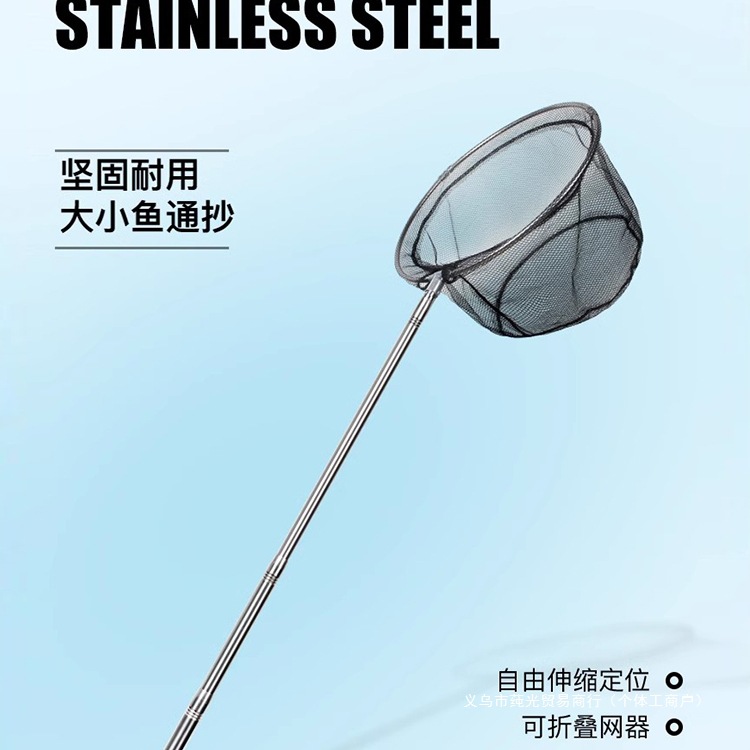 ステンレス製網竿、伸縮竿、網頭、釣り竿、釣り網、折りたたみ網袋、釣具セット