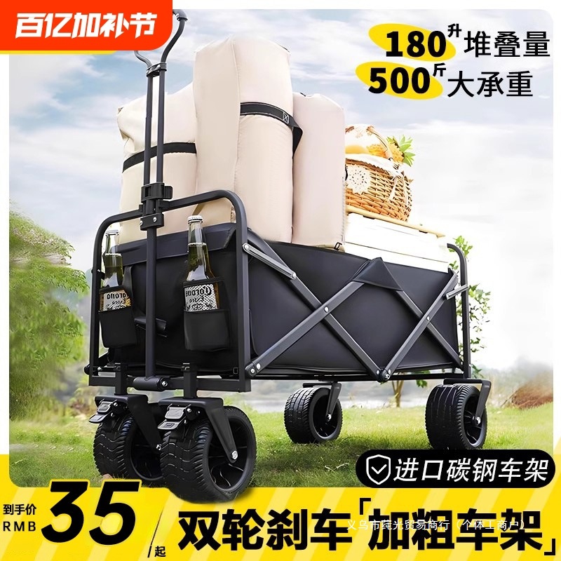 キャンプ用カートの手押し屋外折り畳み可能なキャンプ用トレーラーのピクニックキャンプ用子供は、横になって屋台を並べて旅行することができます。