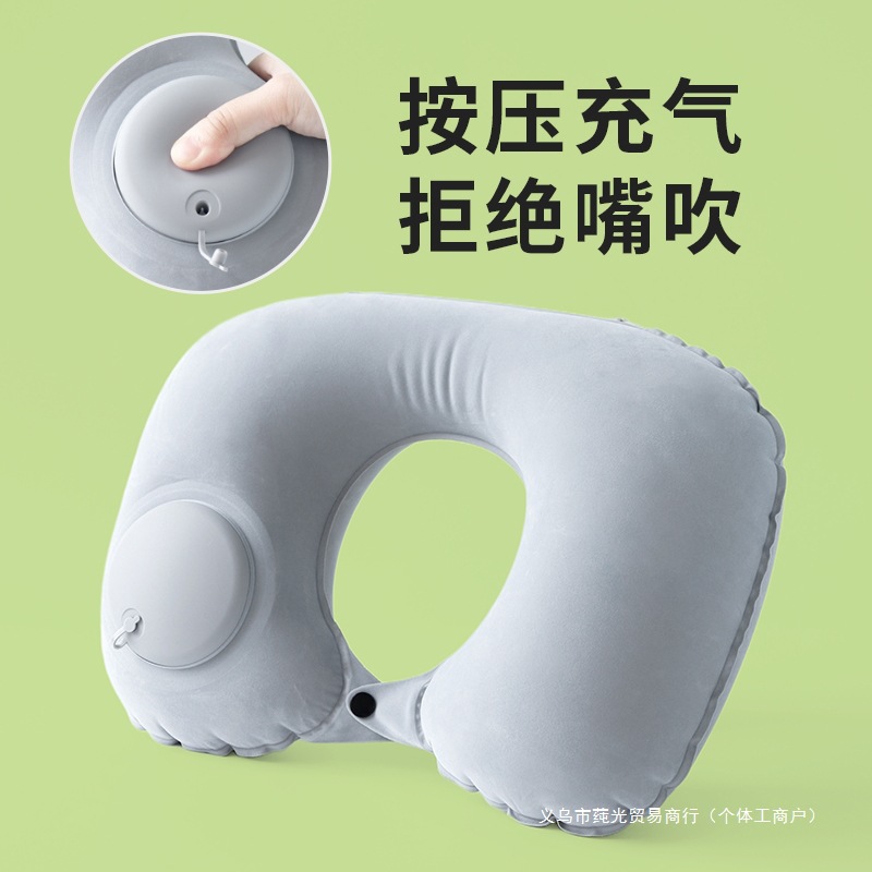 U字型枕 旅行用枕 ポータブル折りたたみ 長距離飛行機 高速鉄道 プッシュ式インフレータブルネックピロー U字型枕