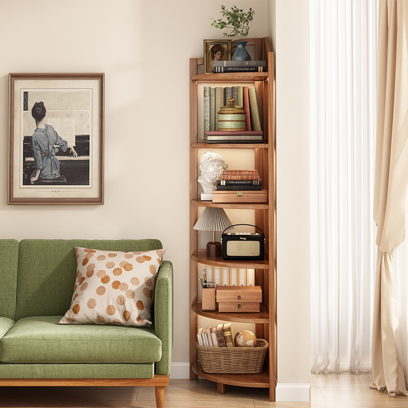 コーナー本棚、床置き収納ラック、リビング収納、シンプルな本棚、多層コーナー無垢材収納キャビネット、書籍
