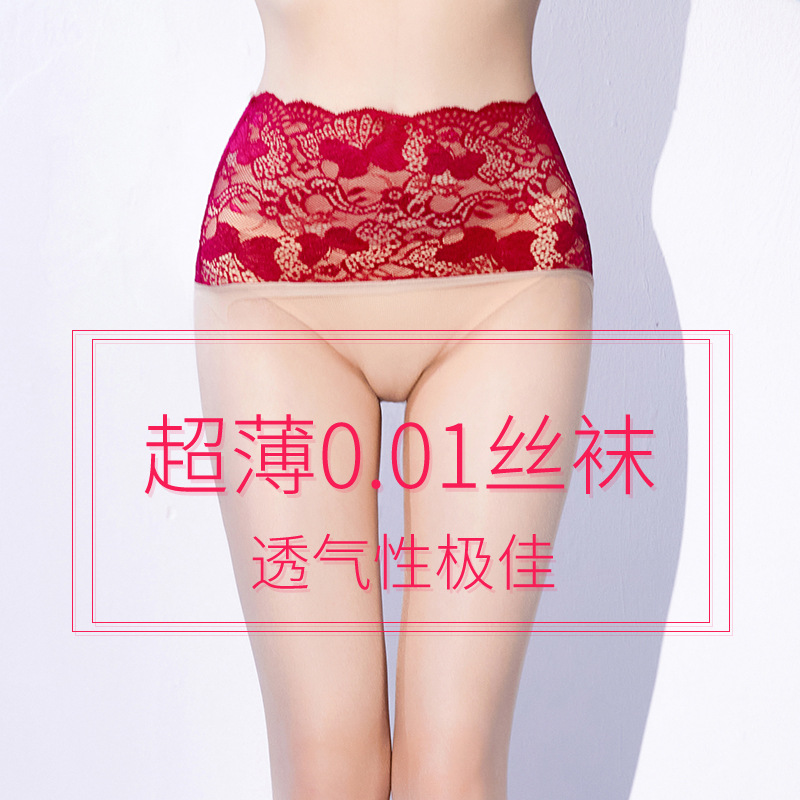 ハイウエスト0.01D超薄型レースウエスト口メッシュウエストシームレスストッキング女性セクシーな肌の色のストッキング
