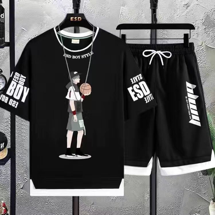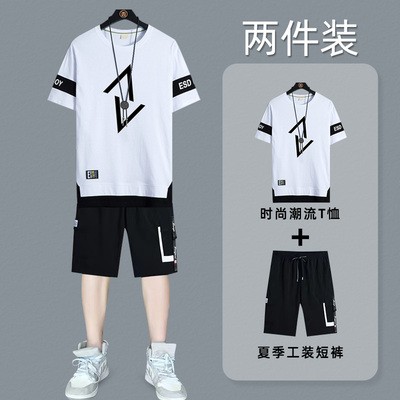 夏の中学生と高校生のトレンディなカジュアル半袖Tシャツスーツメンズハンサムな新しいティーンエイジャースポーツセットトレンディ