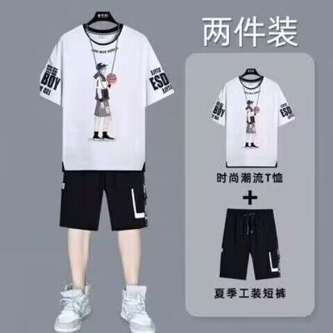 ティーンエイジャーの夏カジュアルスーツメンズトレンディな半袖Tシャツ高校生中学生スポーツマッチング夏服セット
