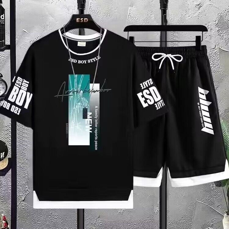 ティーン半袖Tシャツメンズスーツ夏中学生トレンドハンサムスポーツウェアカジュアルツーピーススーツ洋風