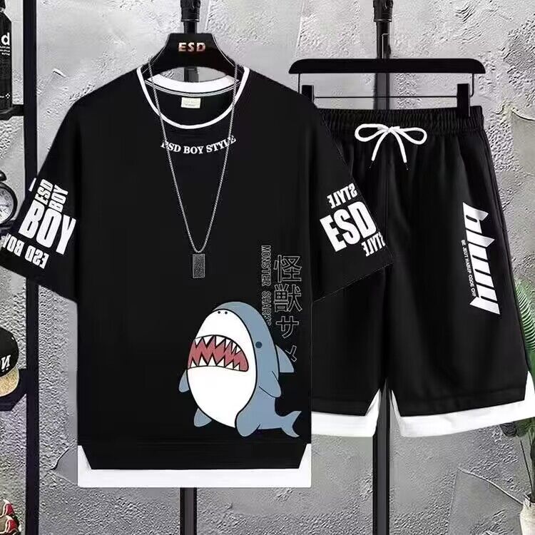 サマースーツ おしゃれ Tシャツ メンズ ティーンエイジャー 中学生 高校生 半袖 トレンド ハンサムコーデ一式