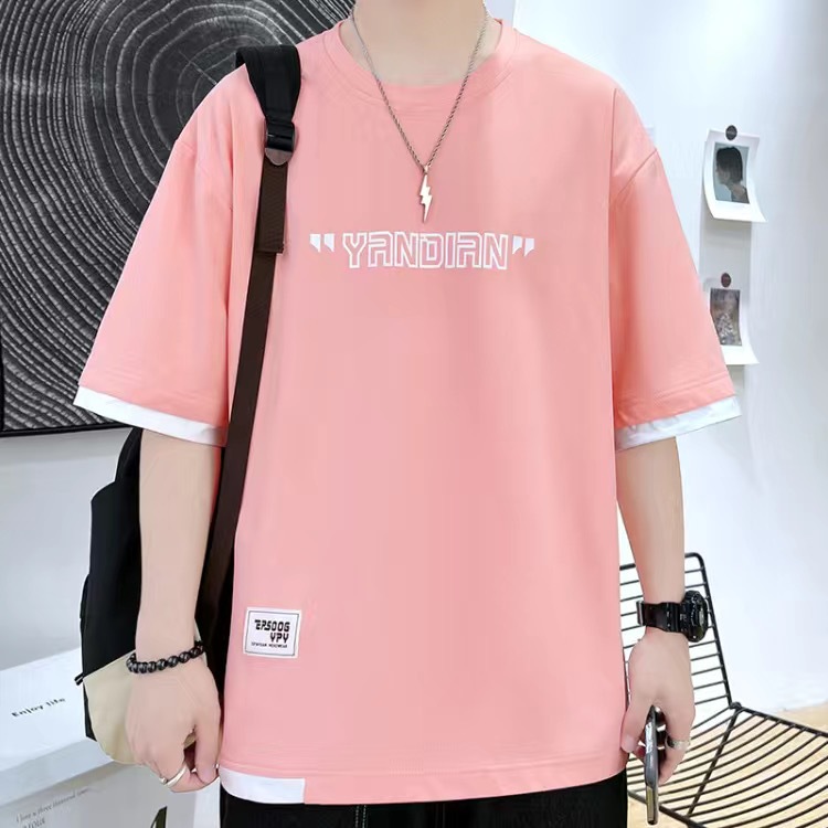 2025 新しいメンズ半袖 Tシャツ半袖夏のトレンディなルーズトレンディなブランド若者ハンサムインプリントトップ