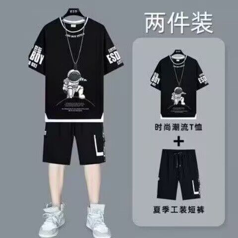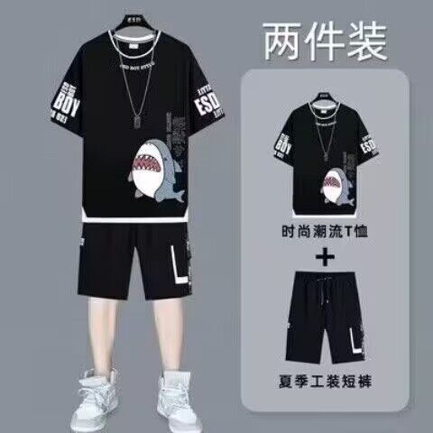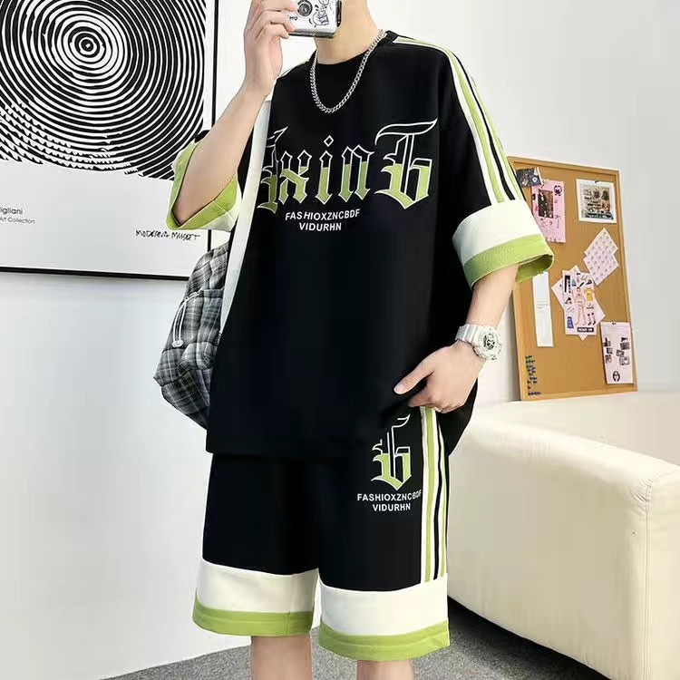メンズ半袖ショートパンツスーツ夏のトレンディなスポーツカジュアルルーズTシャツティーンエイジャー夏ハンサムツーピースセット