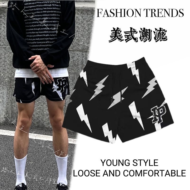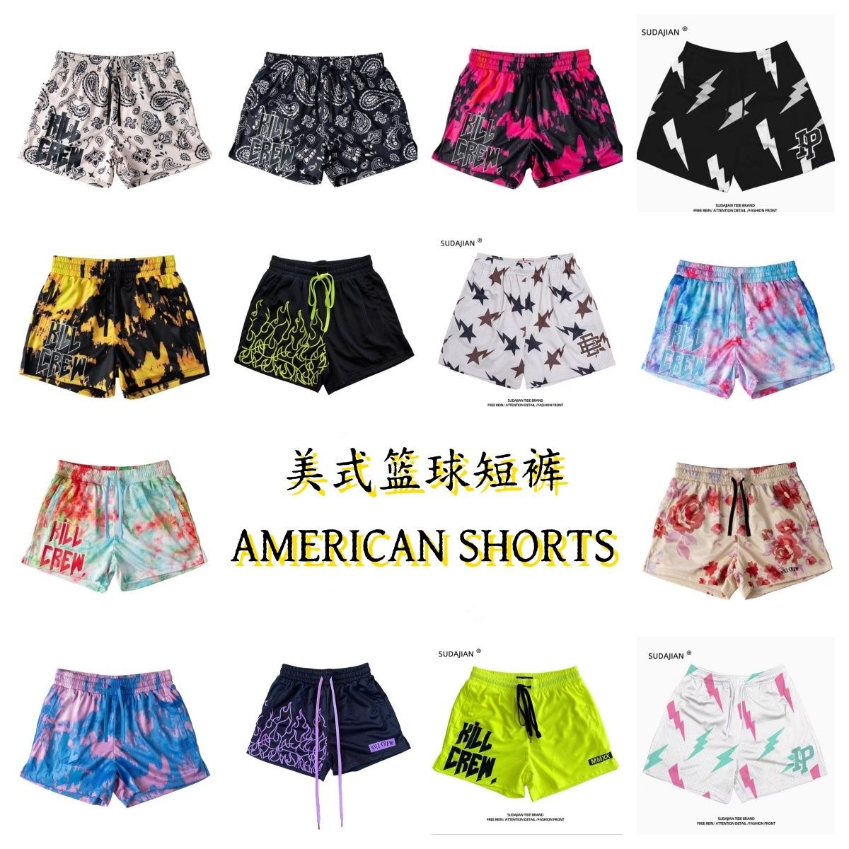 夏のトレンディなブランドプリントアメリカンショーツメンズバスケットボール通気性速乾ランニングスリーポイントパンツハイストリートルーズカジュアルパンツトレンディ