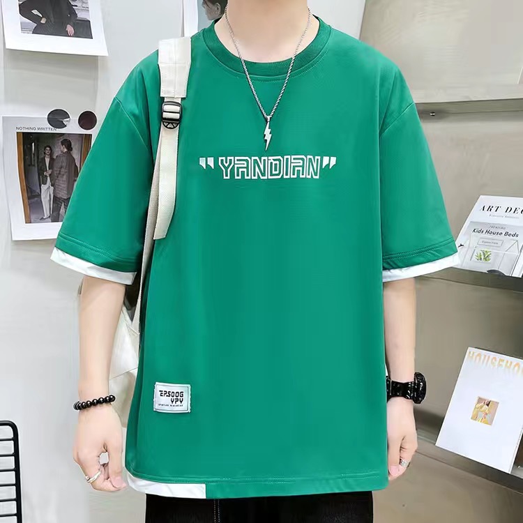 ティーンエイジャー半袖Tシャツメンズゆったりトレンド夏中学生高校生年長児Tシャツスーツ夏トップス