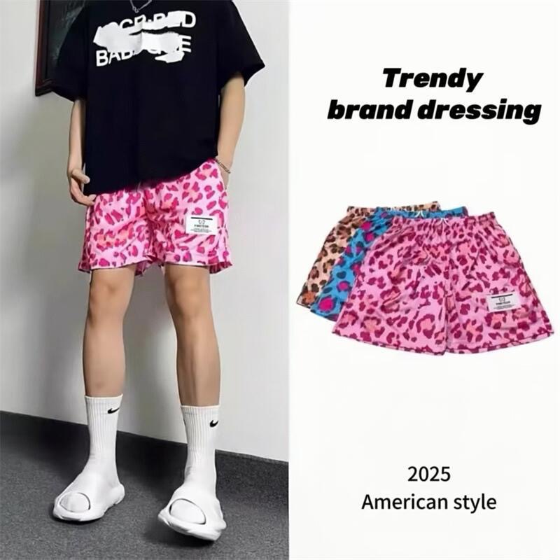 アメリカンピンクヒョウ柄ショーツメンズ夏アウトドアスポーツバスケットボールパンツトレンディブランドハンサムカジュアル4点または5点パンツ