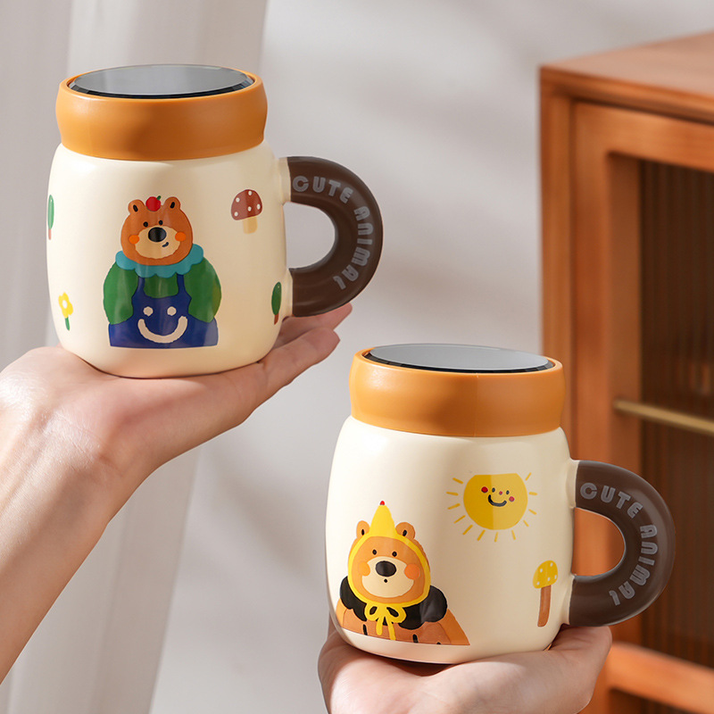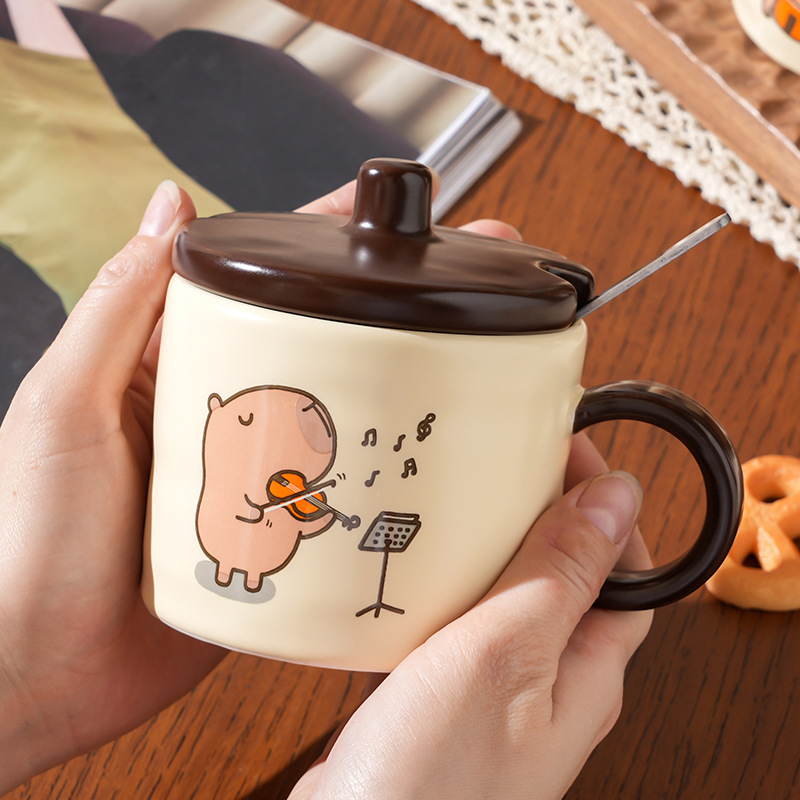 かわいいカピバラマグカップ蓋付き高颜値女子漫画家庭用陶磁器カップオフィスコーヒーカップ