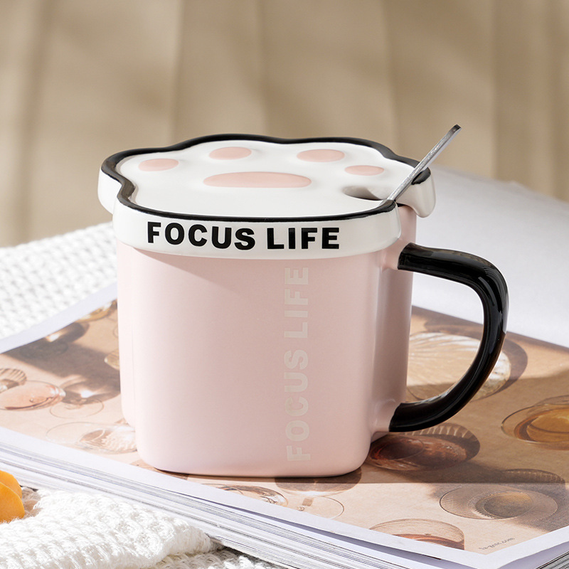 キャンディー猫爪マグカップ蓋付き高颜値女子オフィスカップクリエイティブプレゼント家庭用セラミックコーヒーカップ