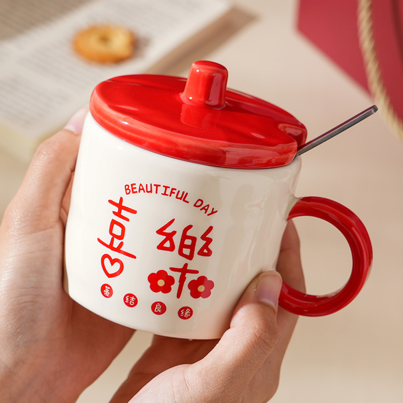 私の家には喜びの創造的な贈り物があります。陶磁器のコップは結婚します。