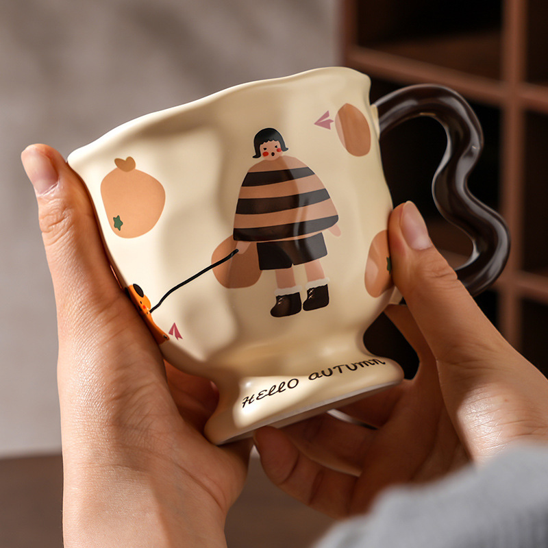 Ins風かわいいセラミックカップ韓国版高颜値アニメクリエイティブマグカップ家庭用カップルコーヒー朝食カップ