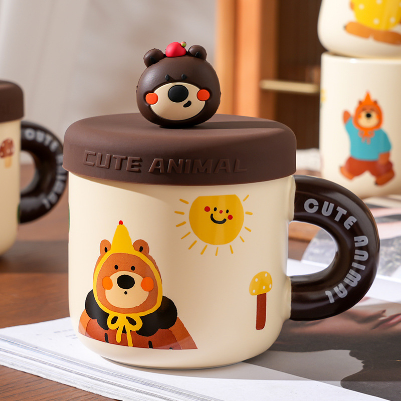 高颜値大容量かわいい动物盖付きスプーン付きセラミックカップ家庭用セットマグカップドーパミン水カップギフト