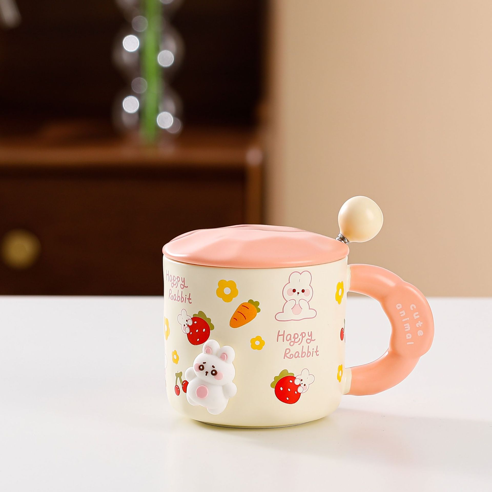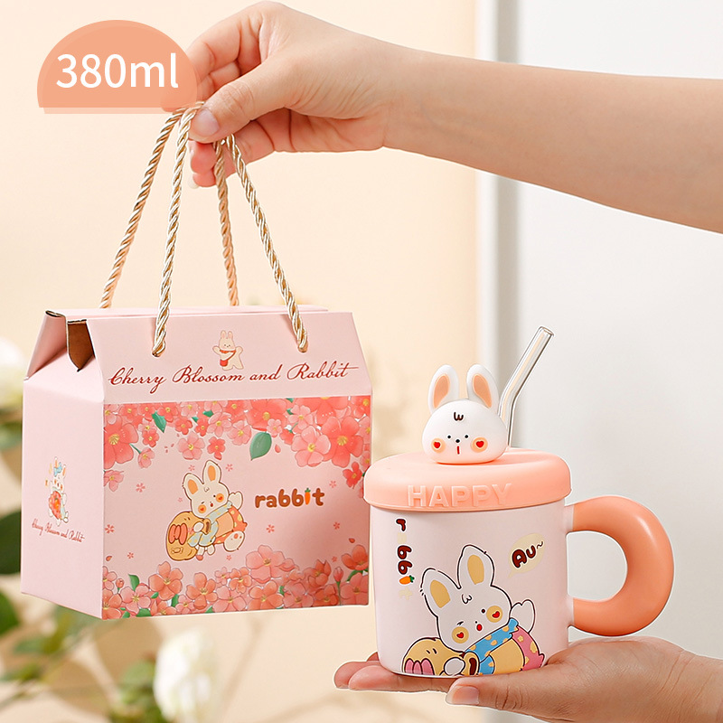 ミッフィーかわいいカップセラミック蓋付きマグカップ大容量コーヒーカップ高颜値カップ誕生日プレゼントカップ