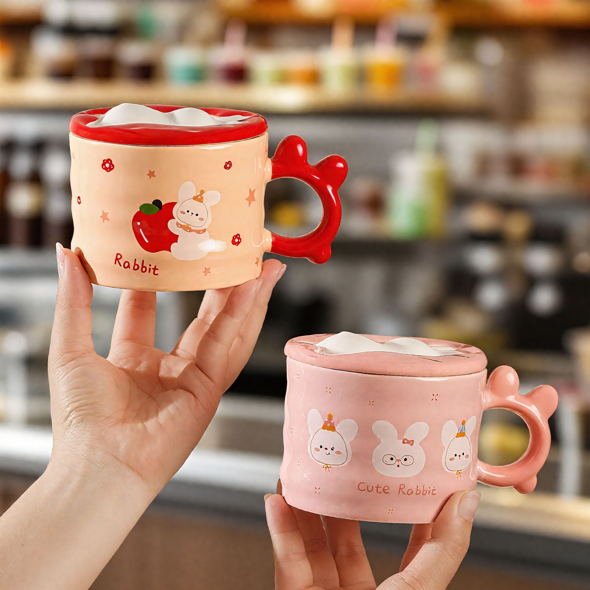 女の子用の蓋付きウサギの漫画セラミックカップ、高温耐性マグカップ、かわいいクリエイティブウォーターカップ、オフィスギフトカップ