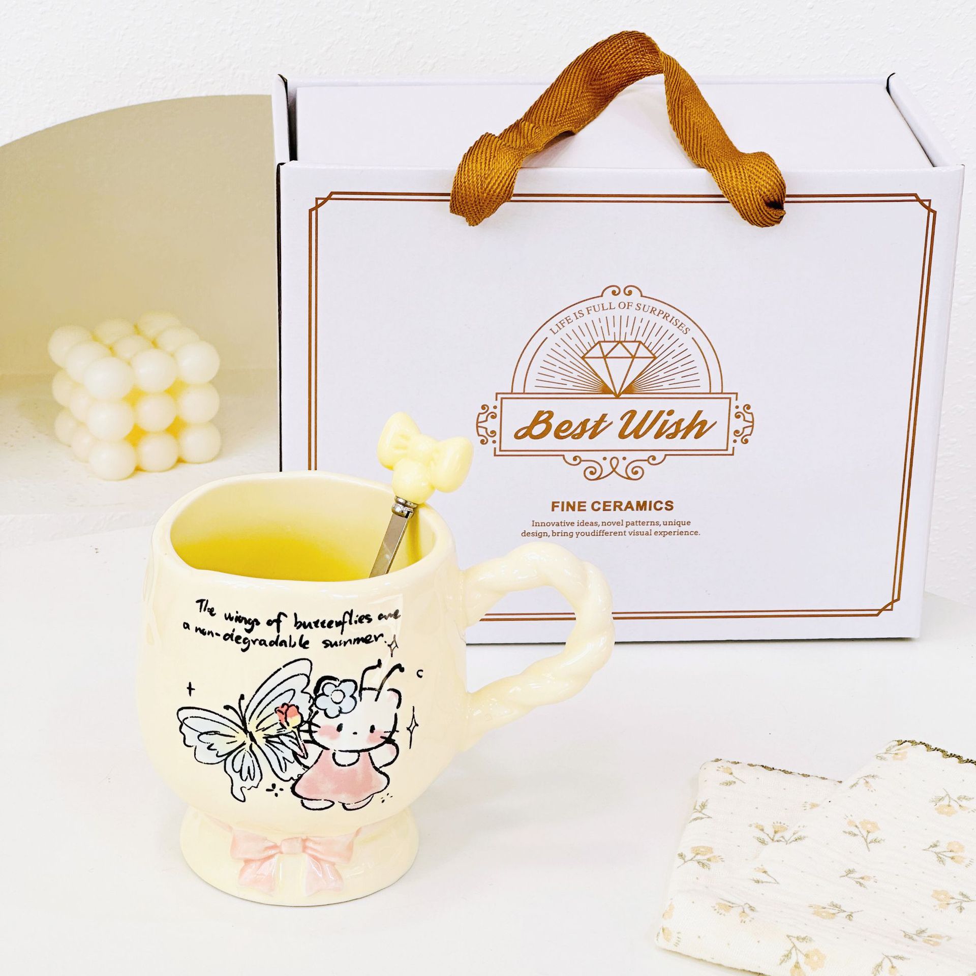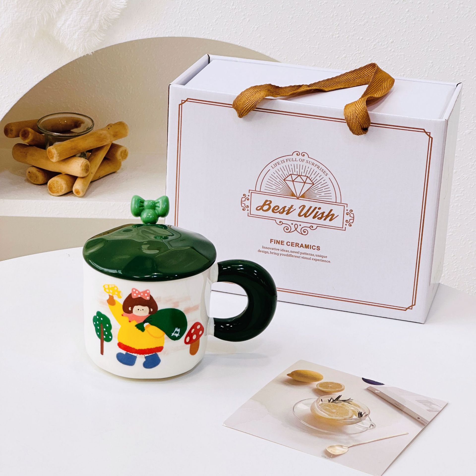 小さな女の子のお土産かわいいセラミックカップ蓋付きスプーンギフトボックスセットマグ小さなギフトホームガールウォーターカップ
