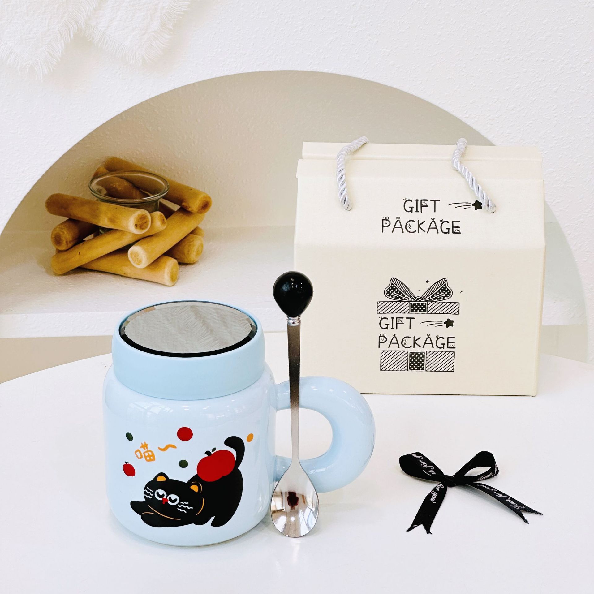 漫画蓋付きスプーン猫かわいい陶磁器セットマグカップ家庭用お土産オフィスカップ女子卸売り