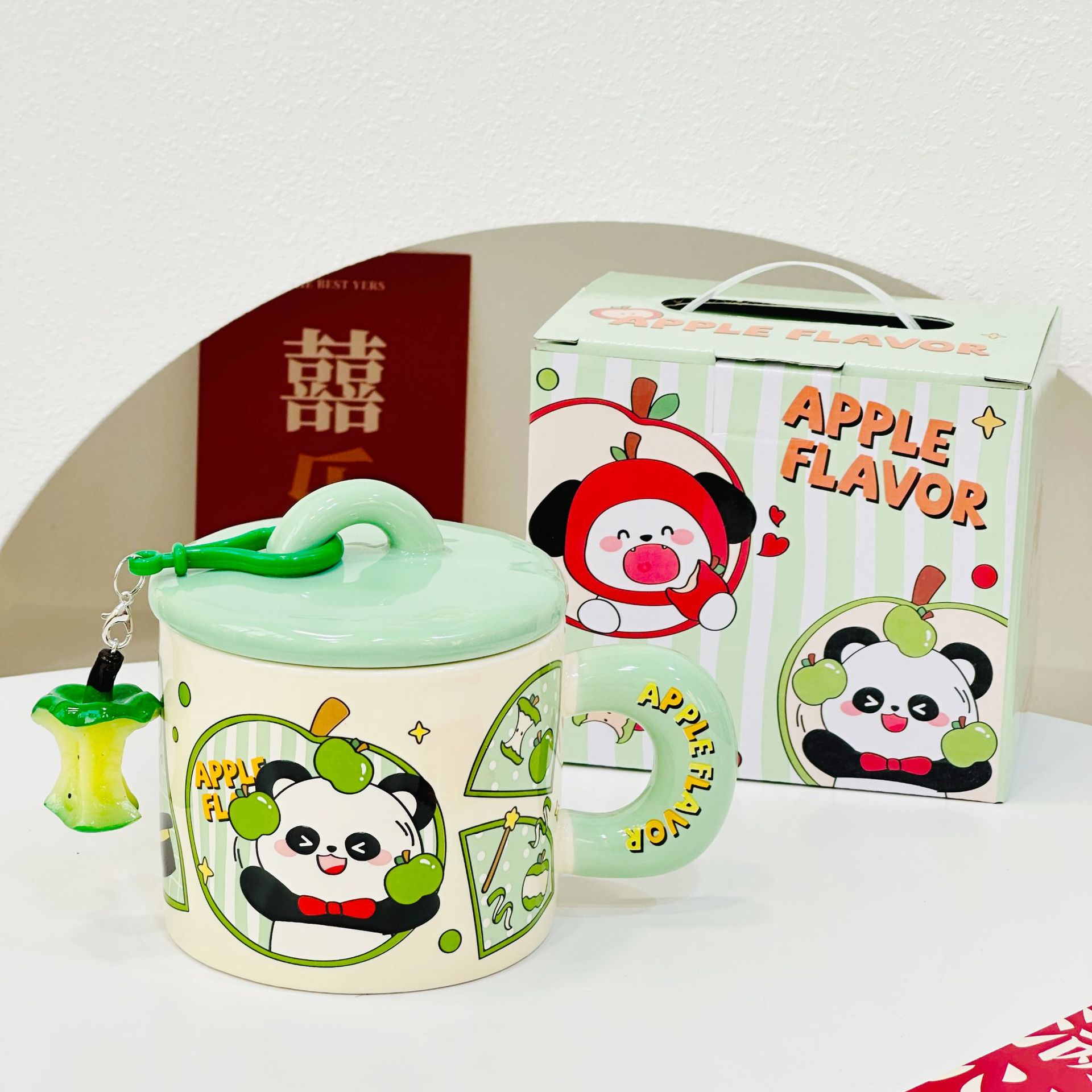 萌えアニメ動物アップルマグカップオフィス高颜値蓋付きカップ朝食カップ誕生日プレゼント