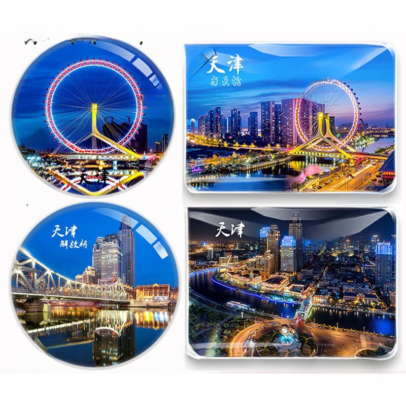 天津記念品天津の目観覧車世紀鐘津門故里磁器家観光ガラス冷蔵庫貼り