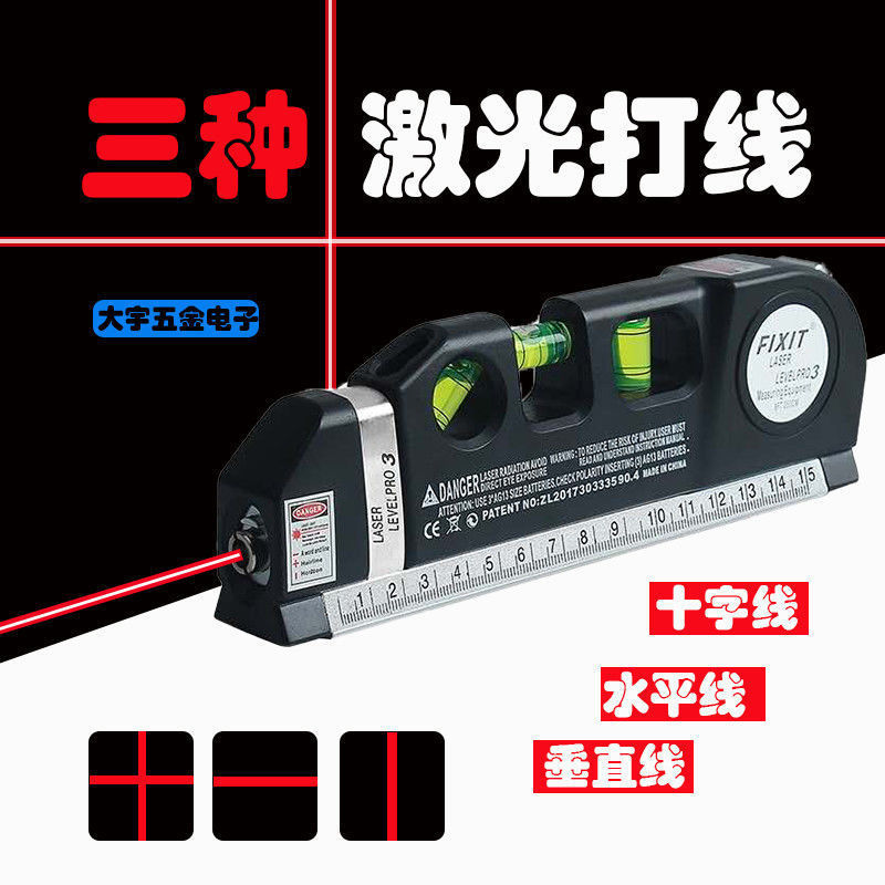 多機能打線器レーザー赤外線水平定規内装ツール水平計十字線四合一巻尺