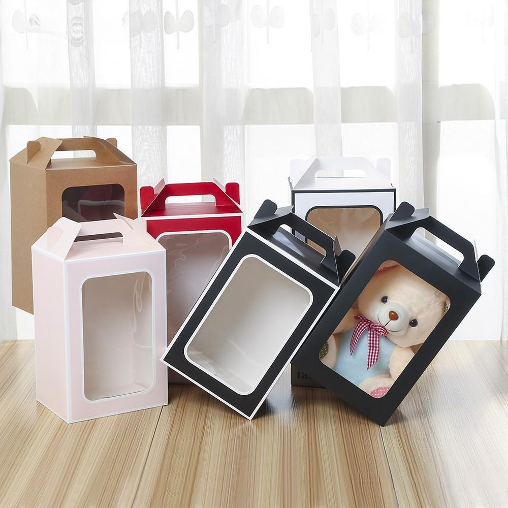 新年窓開けクラフト紙手提げギフトボックス透明包装ボックスショーウインドー花人形ギフトボックス白カード手提げボックス