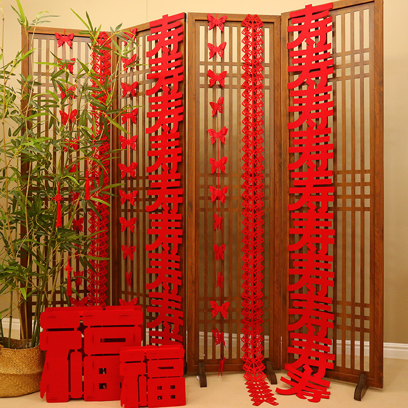老人六十寿宴70誕生日配置大寿字客間祝寿シーン配置背景壁ストラップ装飾品