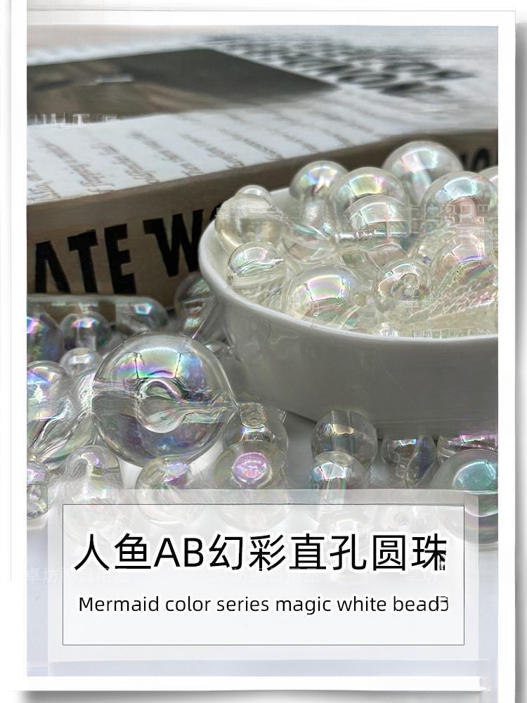 ストレートホールABカラー人魚幻彩アクリル透明カラービーズ編みバッグ手作りDIYブレスレットネックレスビーズ材料