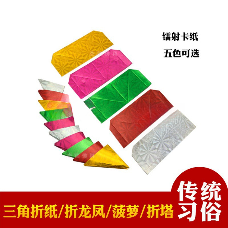 レーザーカラー三角カード紙DIY折り紙三角金花かご花瓶凤凰一桶金同金白地