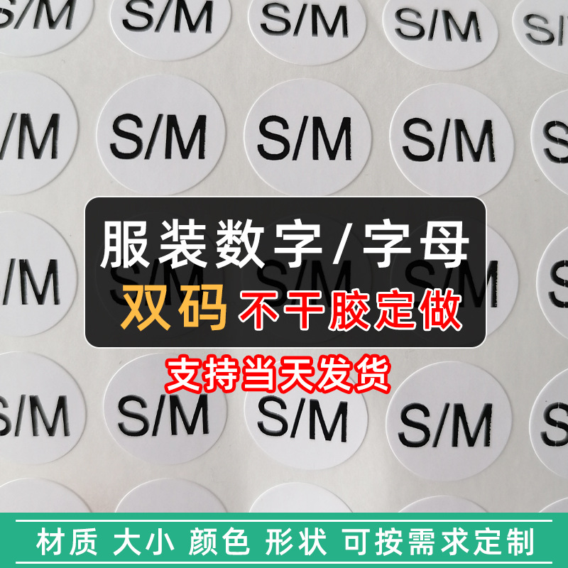 服ダブルサイズS/M/L/XLアルファベット数字ラウンドスクエア粘着ラベルステッカー可