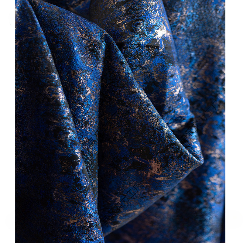 レトロな中国風の青い金のグラデーションのジャカードの布地の美しい筋理の漢服のドレスのチャイナドレスのデザイナーの布地