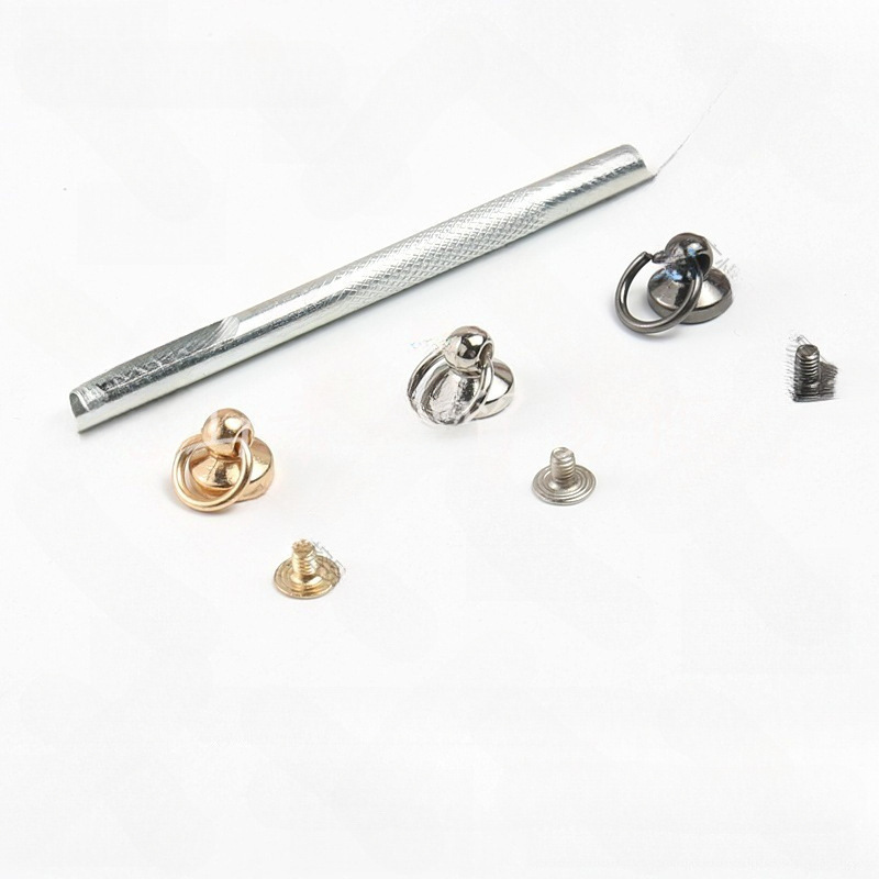 携帯ケースの穴あけ器に穴を開けてネジのボタンの部品を作ります。
